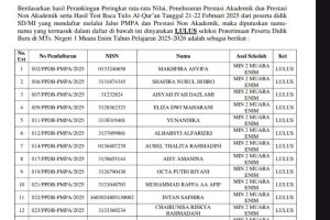 Muara Enim, HumasSebanyak 30 Siswa Madrasah Ibtidaiyah Negeri (MIN) 2 Muara Enim Tahun pelajaran 2025/2026 lulus seleksi jalur Penelurusan Minat Prestasi Akademik (PMPA) dan Non Akademik…