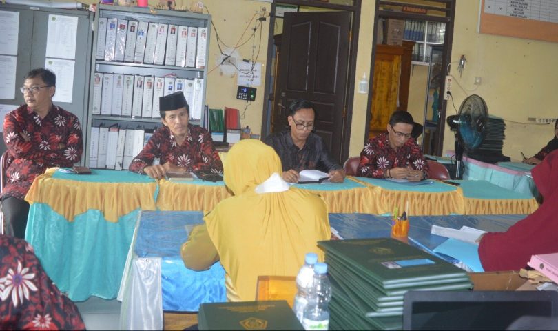 Rapat di buka langsung oleh kepala madrasah Zairin,S.Pd.I. Pada kesempatan ini ia menyampaikan beberapa kriteria kenaikan kelas.