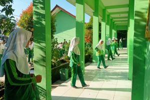 Kepala Madrasah Aidawati, berikan ucapan selamat kepada Azel Khaizuran yang telah meraih prestasi di kejuaraan Taekwondo Bela Negara Piala Mentri Pertahanan RI.